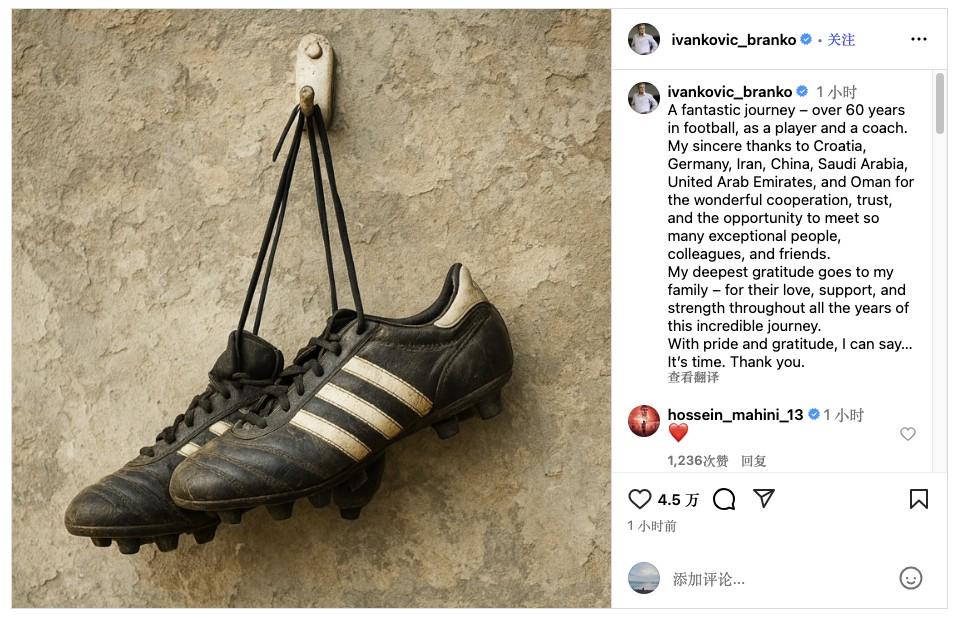 北京时间10月30日,71岁的前国足主帅伊万科维奇在个人社交媒体上宣布正式结束教练生涯。