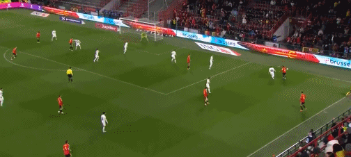 第55分钟,个人国家队处子球,梅切勒门前捅射得分,比利时4-0