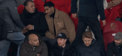第33分钟,镜头给到场边,德布劳内、费莱尼等人看台观战